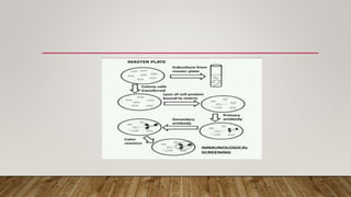 The document discusses immunological screening, a biotechnology method for detecting proteins from cloned genes using techniques like western blotting and ELISA. It emphasizes the importance of immunoscreening in disease diagnosis, clinical therapy, and environmental monitoring. The document includes various immunological techniques, methods, and practical applications, along with references for further reading.