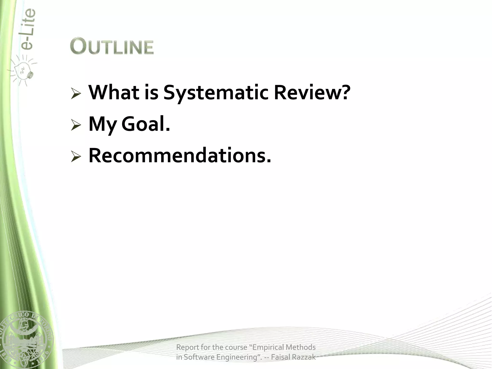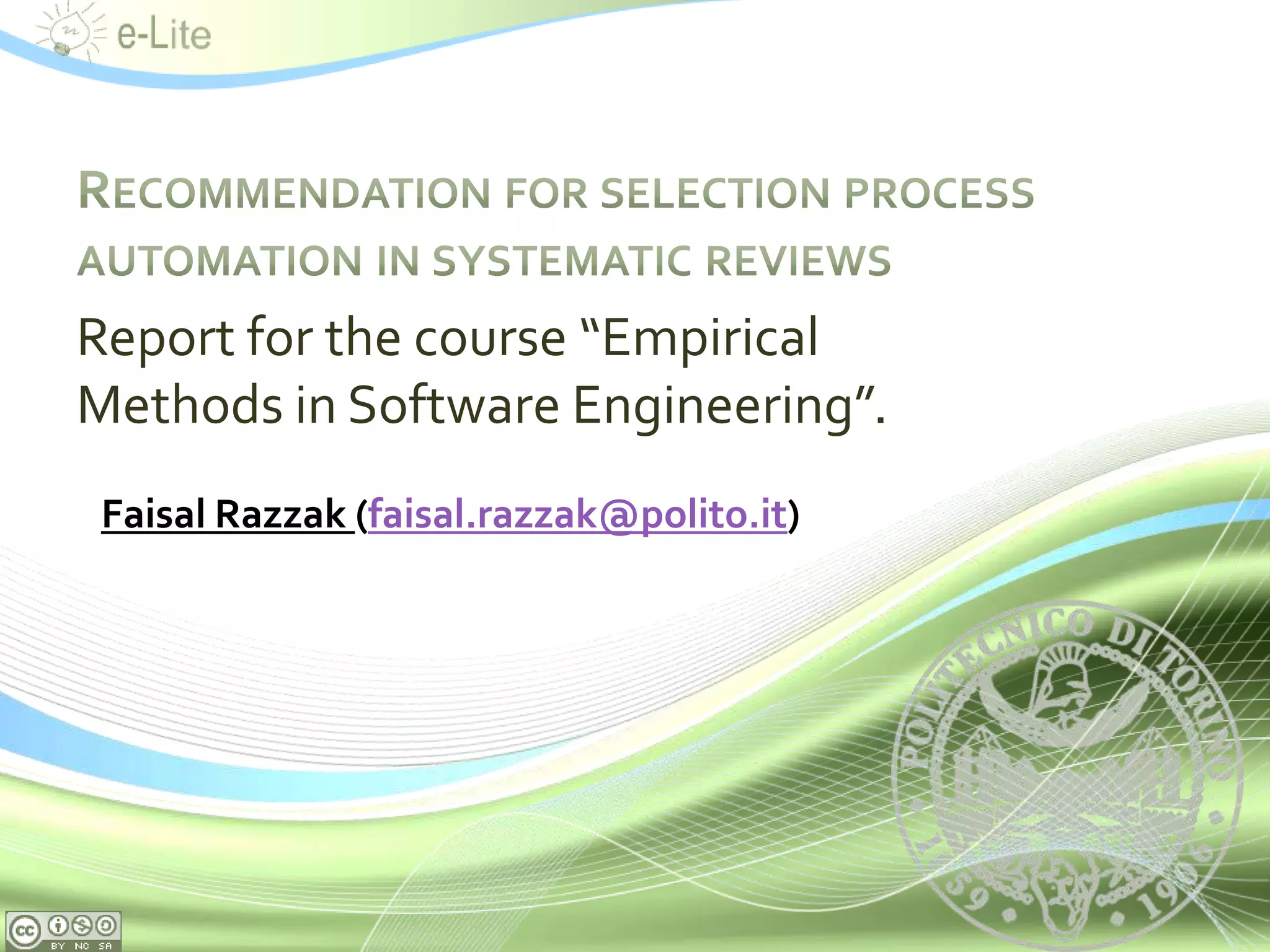 This report discusses recommendations for improving a paper on semi-automating the study selection process in systematic literature reviews. It provides background on systematic reviews and their goal of reducing bias. It then outlines recommendations for enhancing the paper's approach to constructing a bag-of-words model and linking key phrases to semantic web resources to better represent concepts. Specific suggestions include considering related work sections, keywords, and common properties among resources when building the model.