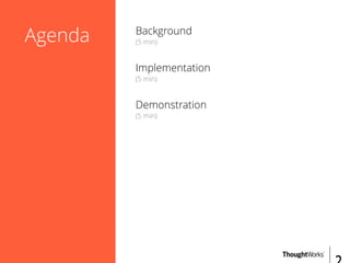 This document provides an overview of recommender systems including background information, implementation details, and a demonstration. It discusses machine learning applications like unsupervised learning, linear regression, and gradient descent algorithms. It covers content-based filtering using known product features and collaborative filtering to identify unknown product features. Examples are given on using linear regression and gradient descent to make predictions for skills data and handle unknown values.