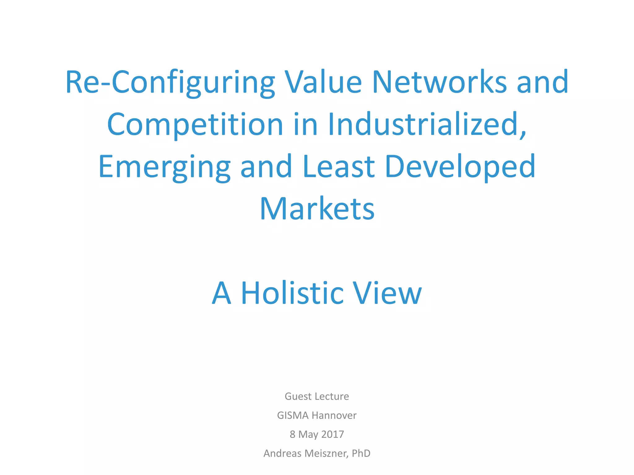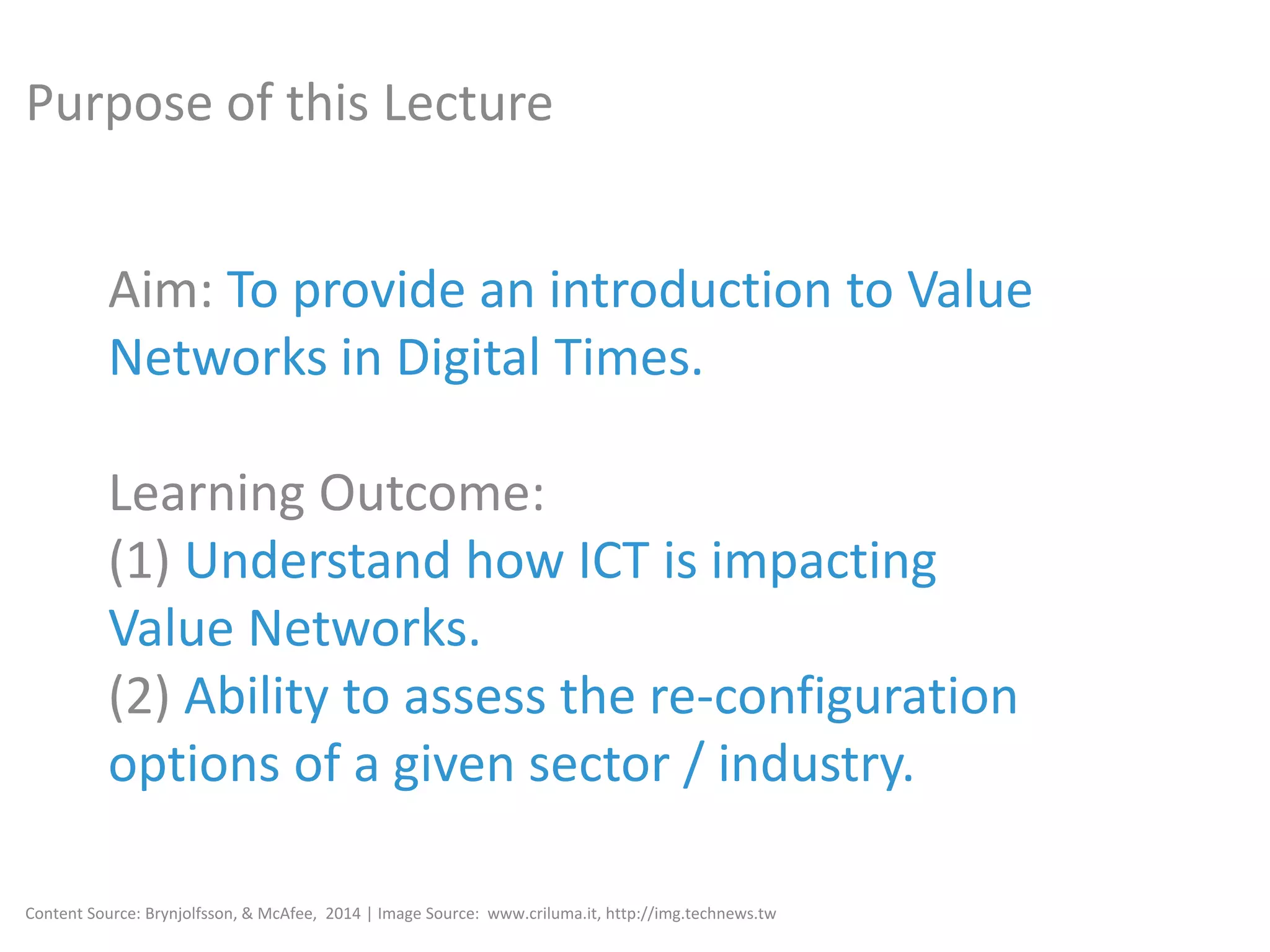 The document discusses how information and communication technologies (ICT) are impacting and reconfiguring value networks. It provides examples of this reconfiguration in four sectors: 1) free and open source software, 2) energy and smart grids, 3) higher education, and 4) Industry 4.0 and 3D printing. The document suggests that ICT allows for new combinations of ideas, mixing and remixing in novel ways, and that economic growth occurs through rearranging resources in more valuable configurations.