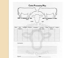 1. Accurate records are essential for tracking medications given and performance characteristics in livestock projects. Proper animal identification allows easy tracking of individual treatments and growth.