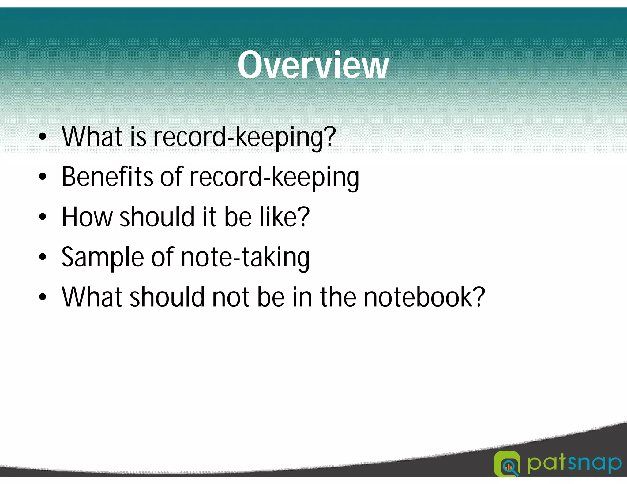 The document outlines the importance of record-keeping for inventions, emphasizing that notes should be handwritten, organized, and secure to serve as legal evidence of conception. It advises maintaining a bound notebook with detailed observations and having a witness present to validate entries. The document also warns against common mistakes in record-keeping, such as making erasures or using shorthand.