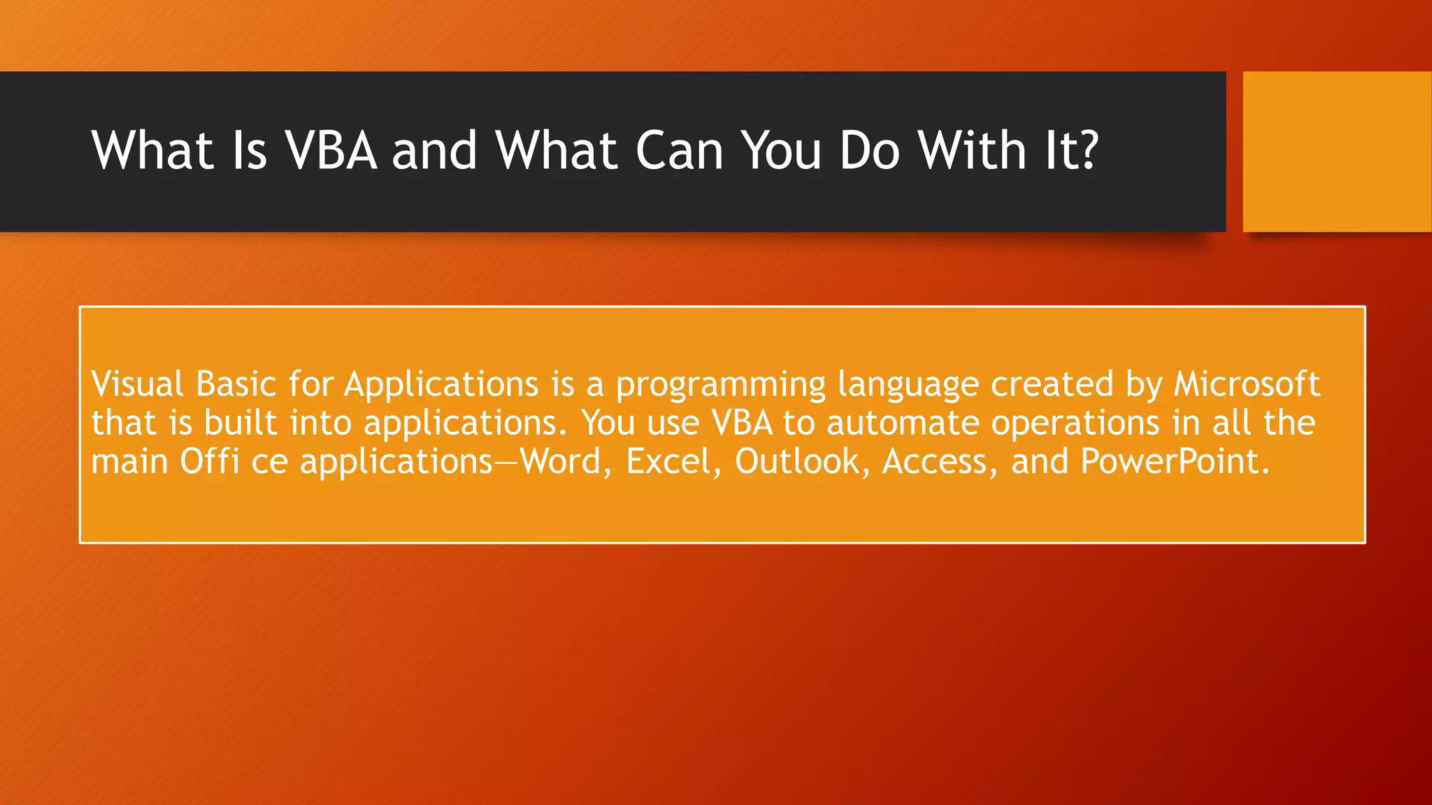 The document explains Visual Basic for Applications (VBA), a programming language by Microsoft used to automate tasks in various Office applications like Word and Excel. It covers macro basics, including how to record and run macros, along with specific steps for naming, describing, and storing macros in Word and Excel. The document includes practical examples and instructions for creating and managing macros efficiently.