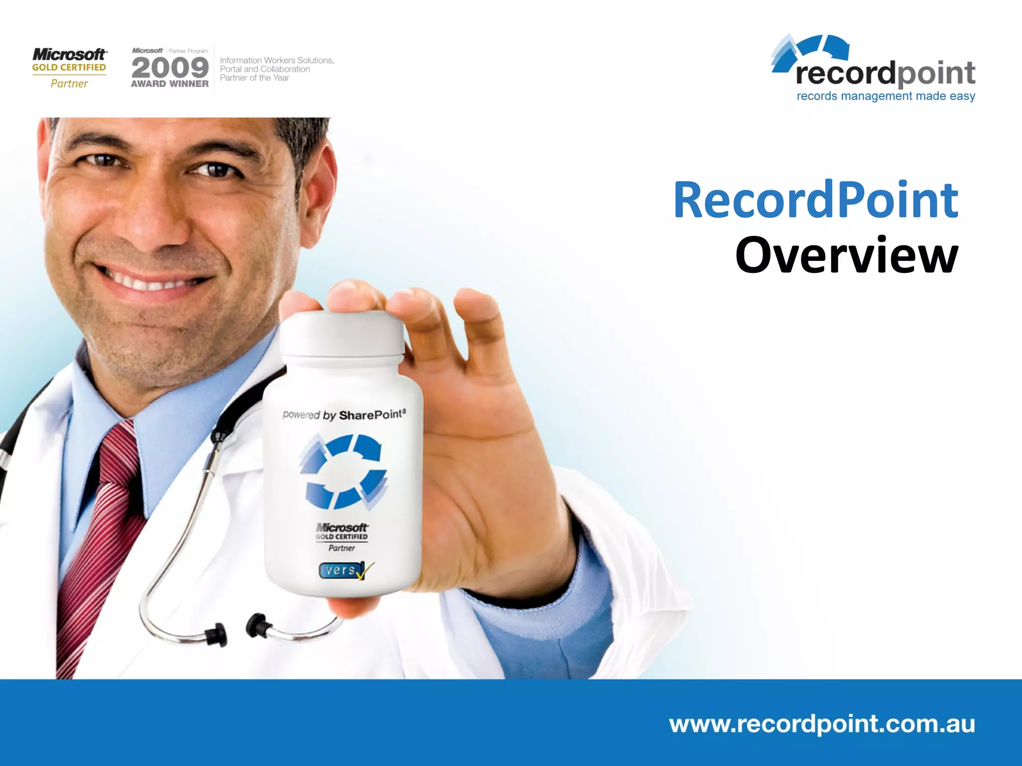 RecordPoint is a Microsoft Gold Certified partner that develops SharePoint records management software and solutions. It launched its RecordPoint product in July 2008, which is certified to meet various compliance standards including VERS and ISO 15489. RecordPoint has 30 customers in Australia and New Zealand and is one of 30 global partners on Microsoft's SharePoint Advisory Council. A Forrester report identified RecordPoint as one of six key partners that can help supplement enterprise records management in SharePoint 2010 by addressing regulatory requirements. While SharePoint 2010 provides 88% of records functionality defined by the ICA standard, RecordPoint is needed to fill gaps and provide additional compliance functionality for requirements monitoring.