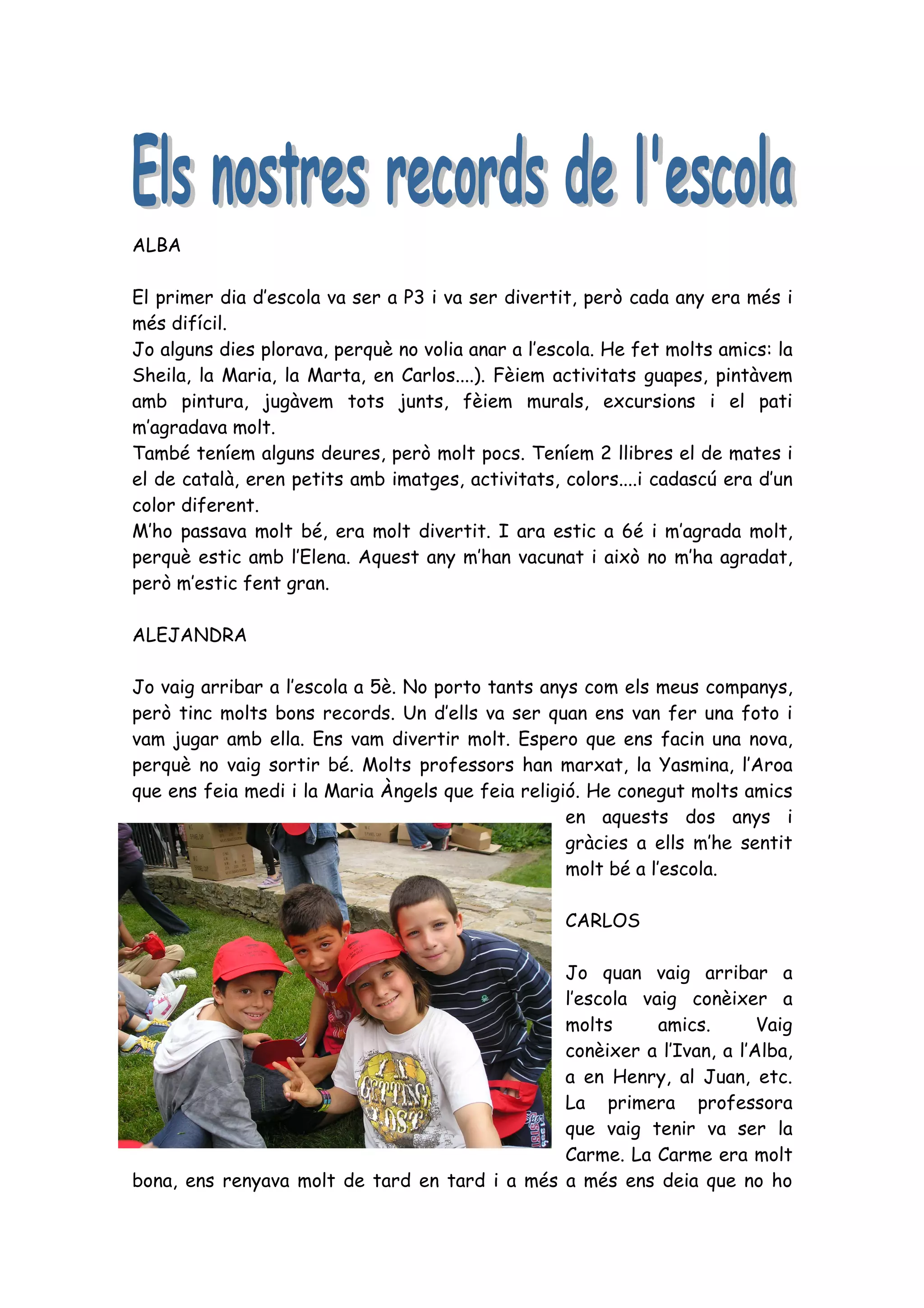 Quan vaig arribar a l’escola vaig conèixer al Carlos, a l’Aina, a l’Alba i a