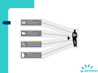 The document summarizes a presentation about using social networking tools for recruitment strategies. It discusses engaging candidates through online communities, measuring the return on investment of social media efforts, and how social media can supplement traditional recruitment media. Specific tactics mentioned include building an online presence, participating in online conversations, tracking metrics from blogs and social sites, and launching a three-month pilot project to test social media recruitment.