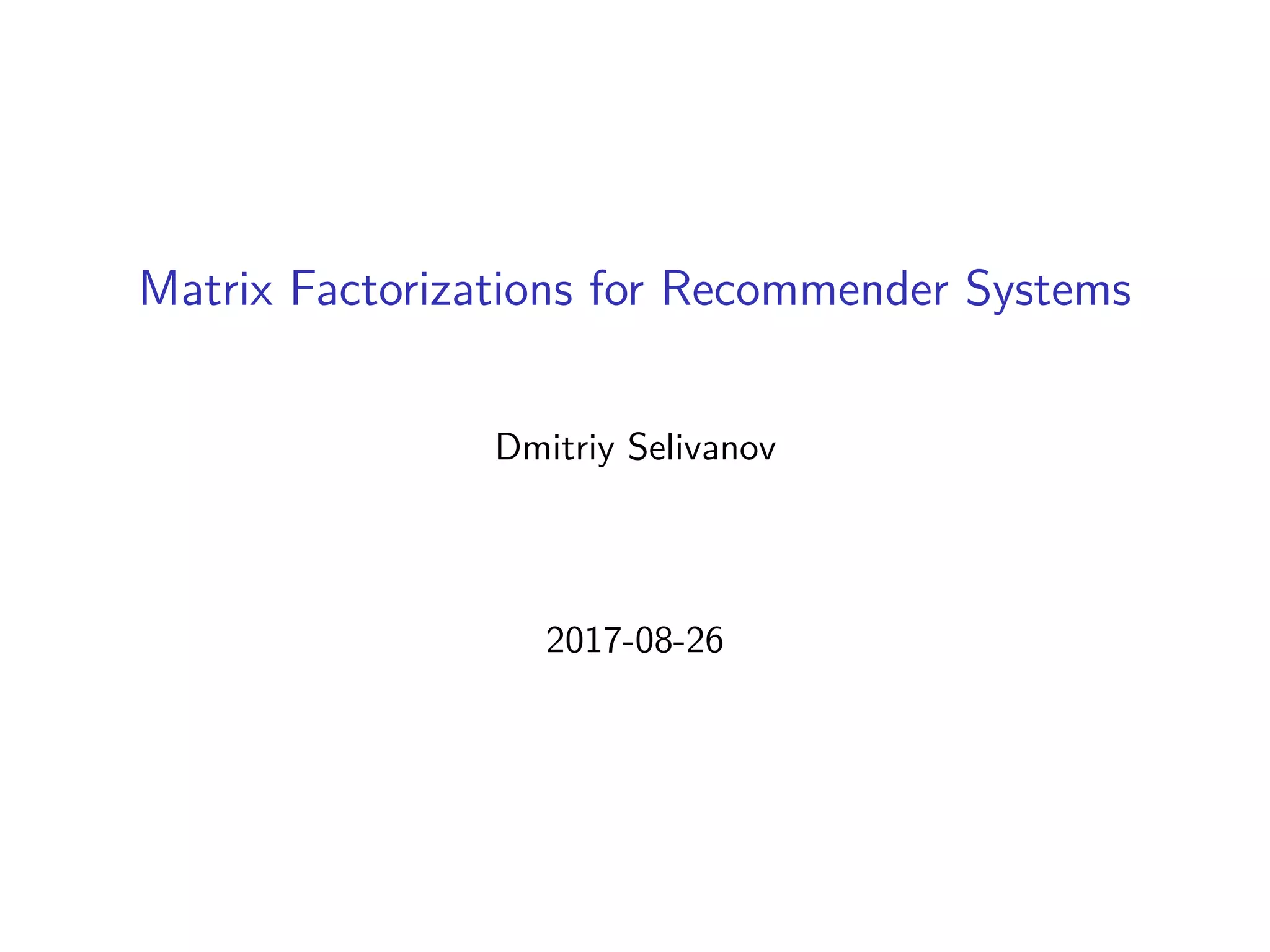 This document discusses matrix factorization techniques for recommender systems. It begins by describing common approaches like content-based, collaborative filtering, and hybrid recommender systems. It then focuses on collaborative filtering, discussing memory and cold start issues with user-based and item-based approaches. The document introduces latent factor models like matrix factorization that address these issues by representing users and items as vectors of factors. It covers optimization techniques like alternating least squares for explicit and implicit feedback datasets. Finally, it discusses evaluation metrics like MAP and NDCG that are more appropriate than RMSE for recommender systems.