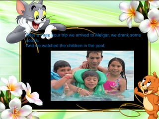 This family went on a holiday to Melgar in June where after a three hour trip they arrived, had some sodas, and watched the children in the pool. They enjoyed sharing a big breakfast together where the food was really good, and found Melgar to be an interesting place to visit, though were sad that the holidays had come to an end.