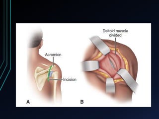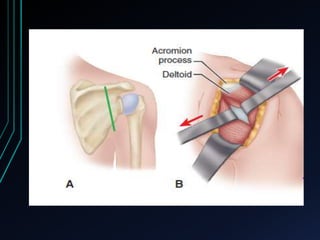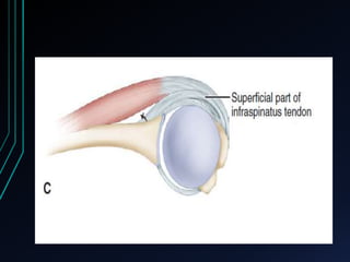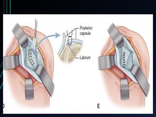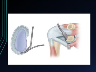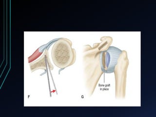 This document discusses recurrent shoulder dislocations. It provides information on the anatomy and stabilizing structures of the shoulder joint. Recurrent dislocations are most common in younger patients and those with underlying bone defects or ligament laxity. Evaluation involves assessing the direction, degree, and chronicity of instability through patient history and physical exam maneuvers like the shift test and sulcus test. Classification systems aim to characterize the type and cause of instability to guide treatment.
