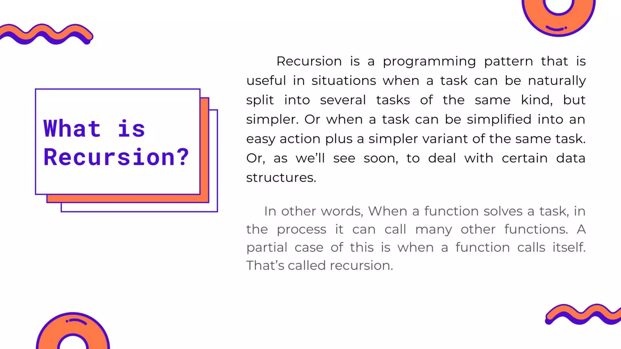 The document provides various resources and links about recursion in Python. It includes visual and textual explanations from different platforms. The focus is on understanding and implementing recursive functions.