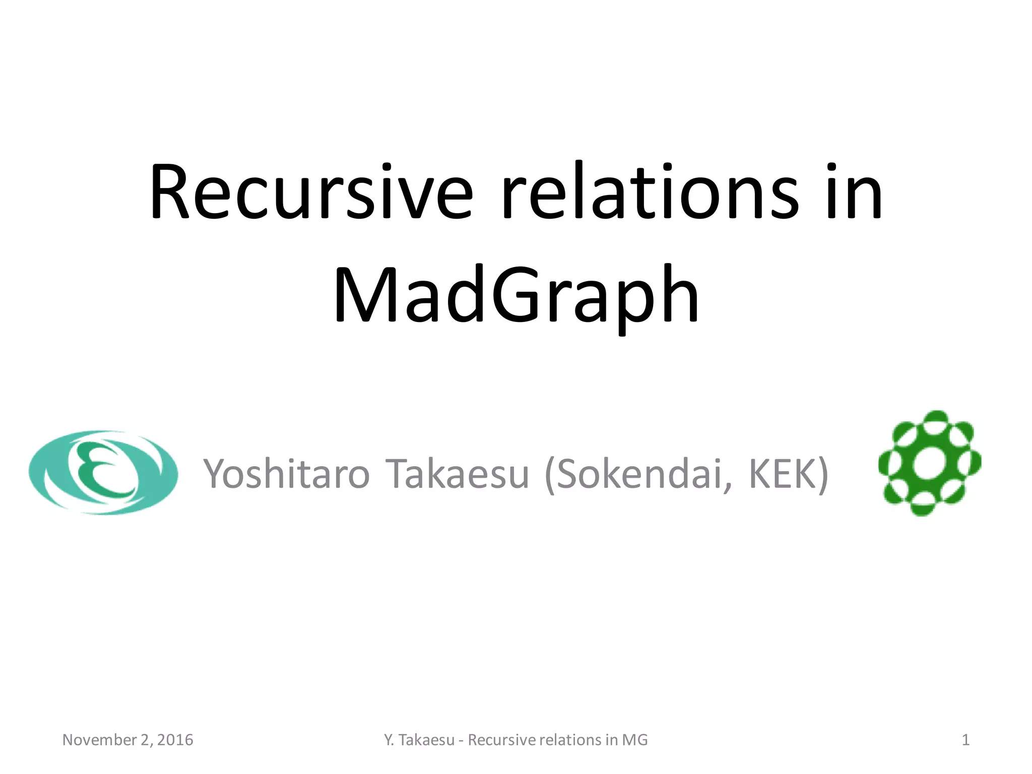 This document discusses the use of recursive relations in MadGraph to more efficiently calculate multi-parton QCD processes. Recursive relations reduce the number of amplitude terms that must be calculated by relating higher-point terms to sums of lower-point terms. The author implemented off-shell recursive relation subroutines in the HELAS library to allow MadGraph to calculate processes with 5 or more gluons in the final state. Future work includes applying these techniques to processes with quarks and performing phase space integration and event generation.