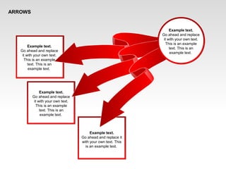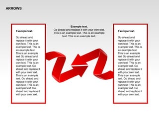 The document contains repeated blocks of text instructing the reader to replace example text with their own text. Sections of text are formatted with arrows and include instructions to replace text. The document appears to be providing examples for formatting and customizing text.