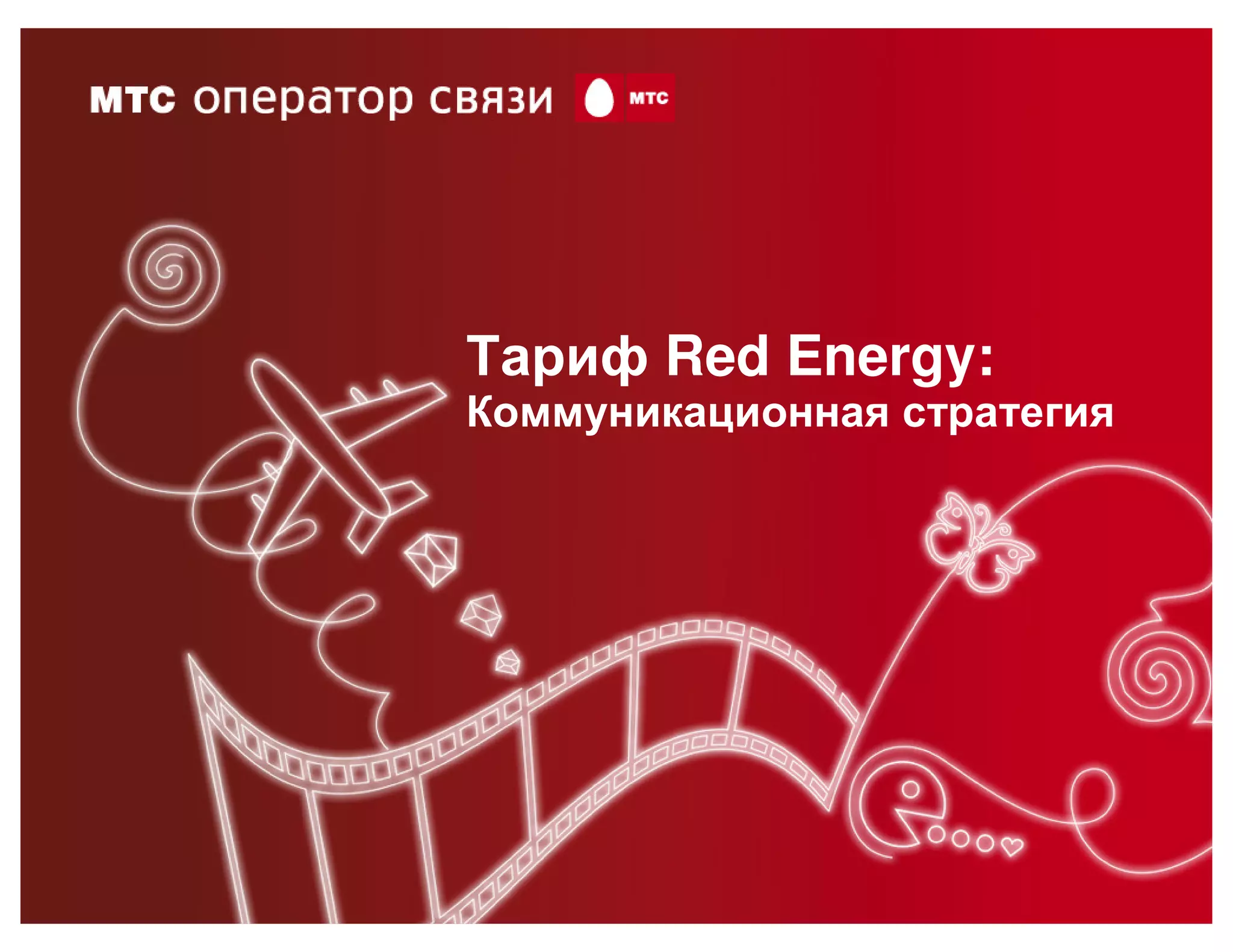 Документ описывает коммуникационную стратегию тарифа 'red energy', направленную на привлечение 'модной молодежи' в России и за рубежом. Основная цель заключается в улучшении восприятия бренда МТС и продвижении тарифа как инновационного и привлекательного для молодежной аудитории, которая ценит свободу самовыражения и современные технологии. Стратегия включает в себя увеличение доли рынка в молодежном сегменте через рекламные кампании и создание безлимитных возможностей общения.