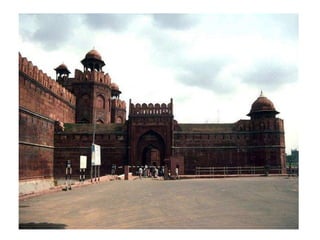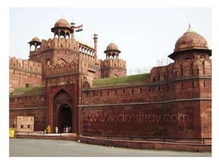 Shah Jahan started construction of the Red Fort in 1638 which was completed in 1648. It contains halls, palaces, apartments, a mosque and gardens displaying Mughal grandeur. Though attacked in 1739 and 1857, it remains an impressive testimony to Mughal rule. The fort has thick red sandstone walls with turrets and bastions within a moat. It covers two square kilometers and the walls vary from 18 to 33 meters high. Today it reflects the glory of the Mughal era and its magnificence transports visitors back in time through its sound and light shows.