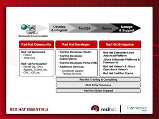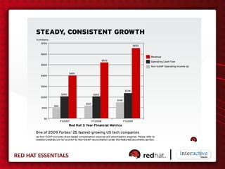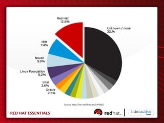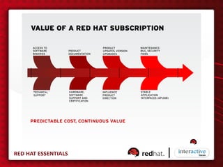 The document outlines a comprehensive agenda for a Red Hat event, detailing topics such as the introduction to Red Hat and open source, Red Hat Enterprise Linux (RHEL) overview, market statistics, customer education strategies, and subscription models. It highlights the benefits of open source software and Linux, and discusses Red Hat's portfolio including systems management, identity management, and cloud virtualization services. Additionally, it emphasizes the importance of renewals and provides marketing support resources for partners engaging with Red Hat products.