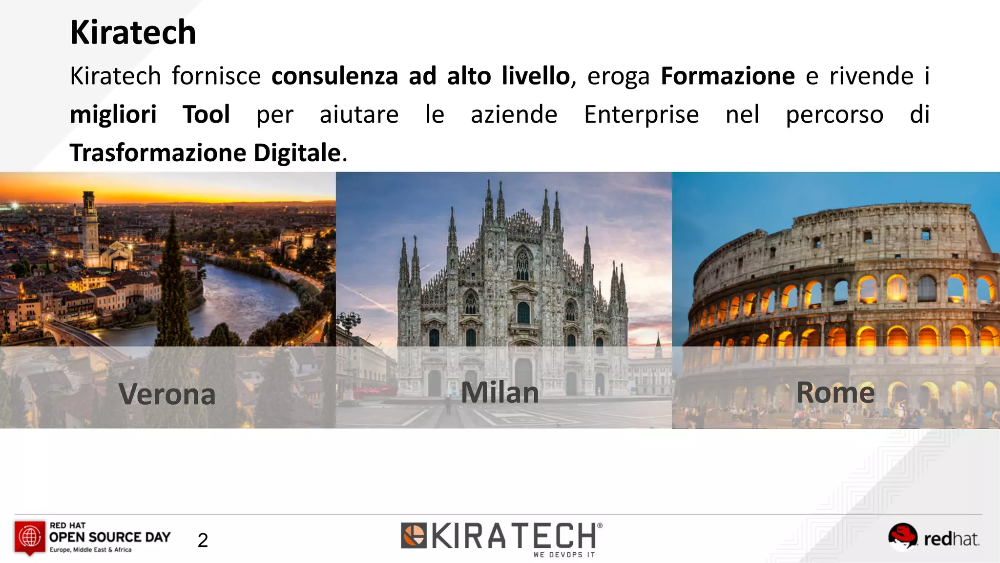 Kiratech offre consulenza, formazione e strumenti per supportare le aziende nella trasformazione digitale, focalizzandosi su tecnologie come DevOps, cloud e sicurezza. L'azienda ha un'esperienza di oltre dieci anni nella selezione delle migliori tecnologie e metodologie, collaborando con partner come Red Hat. Il documento esplora l'evoluzione dei sistemi informatici, dai mainframe fino alle nuove frontiere dell'intelligenza artificiale e del machine learning.