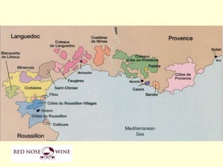 The document summarizes the key topics covered in a 5-week wine course, including an introduction to wine, tasting techniques, major wine regions in Europe and globally, and profiles of important grape varieties like Sauvignon Blanc and Merlot. Specific regions highlighted include Bordeaux, Burgundy, the Rhone Valley, Loire Valley, and major New World regions. Key classifications systems in Bordeaux and Burgundy are explained.