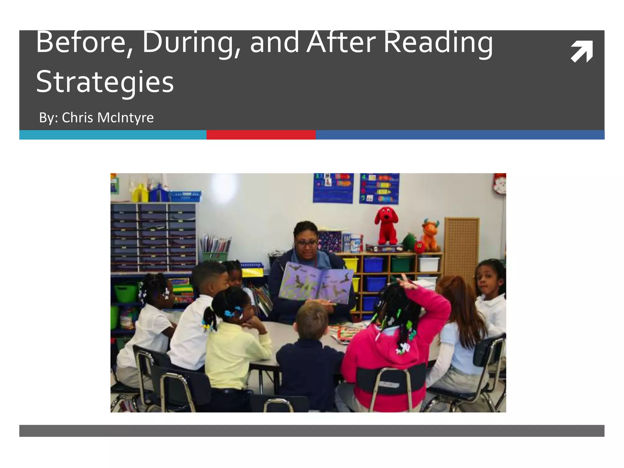 The document discusses various strategies that teachers can use before, during, and after reading to improve student comprehension of nonfiction texts. It describes several "before reading" strategies like think-pair-share, KWL charts, previewing text, and identifying keywords to activate student background knowledge. "During reading" strategies mentioned include response sheets, literature circles, guided reading, and reciprocal teaching. "After reading" strategies outlined are literature-based thematic units, learning logs, exit slips, retelling, and oral reports. The document emphasizes that using these research-based strategies can help motivate students and develop their reading proficiency.