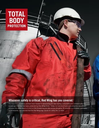 Red Wing offers a comprehensive range of personal protective equipment (PPE) designed for safety and comfort across various demanding work environments. With over a century of experience, they prioritize quality through rigorous testing and compliance with global safety standards. Their products include specialized footwear, workwear, and PPE accessories tailored to meet the needs of workers in extreme conditions worldwide.