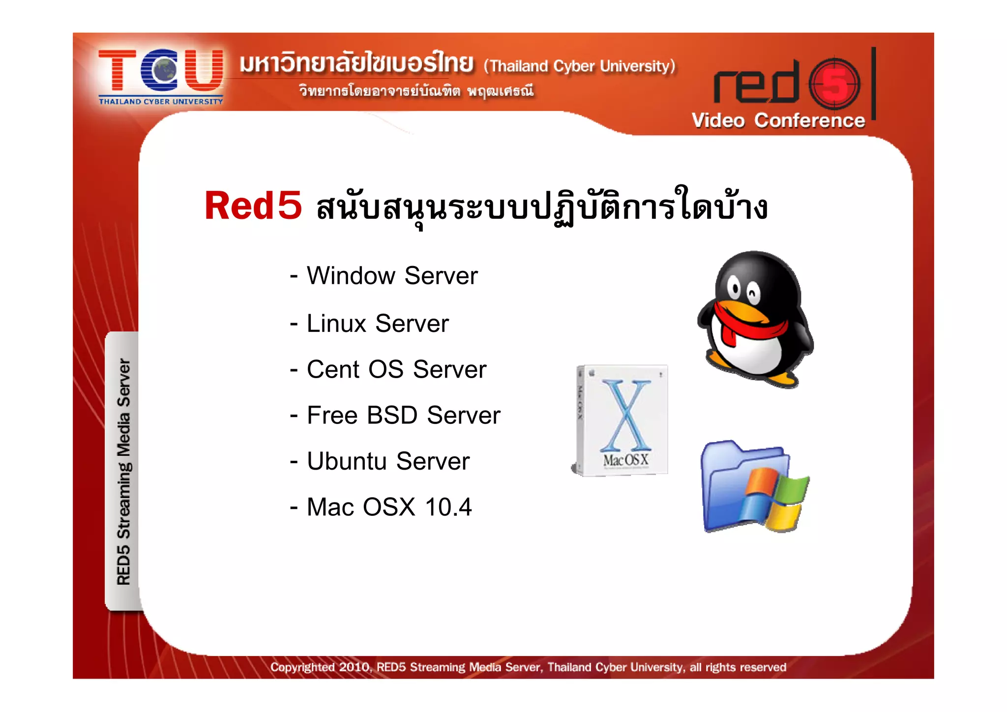 การติดตังสตรีมมิ่งเซิรฟเวอรแบบ Open source: Red 5