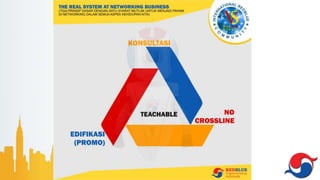 Dokumen ini menjelaskan tentang komunitas trading cryptocurrency Redblue yang bertujuan untuk menciptakan lapangan pekerjaan dan meningkatkan kesejahteraan. Cryptocurrency adalah mata uang digital yang terdesentralisasi, dan ada dua metode trading yaitu manual dan auto trading, dengan penjelasan kelebihan masing-masing. Redblue menawarkan software trading otomatis dan system network education untuk membantu anggota memperolehnya penghasilan tambahan.