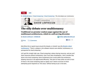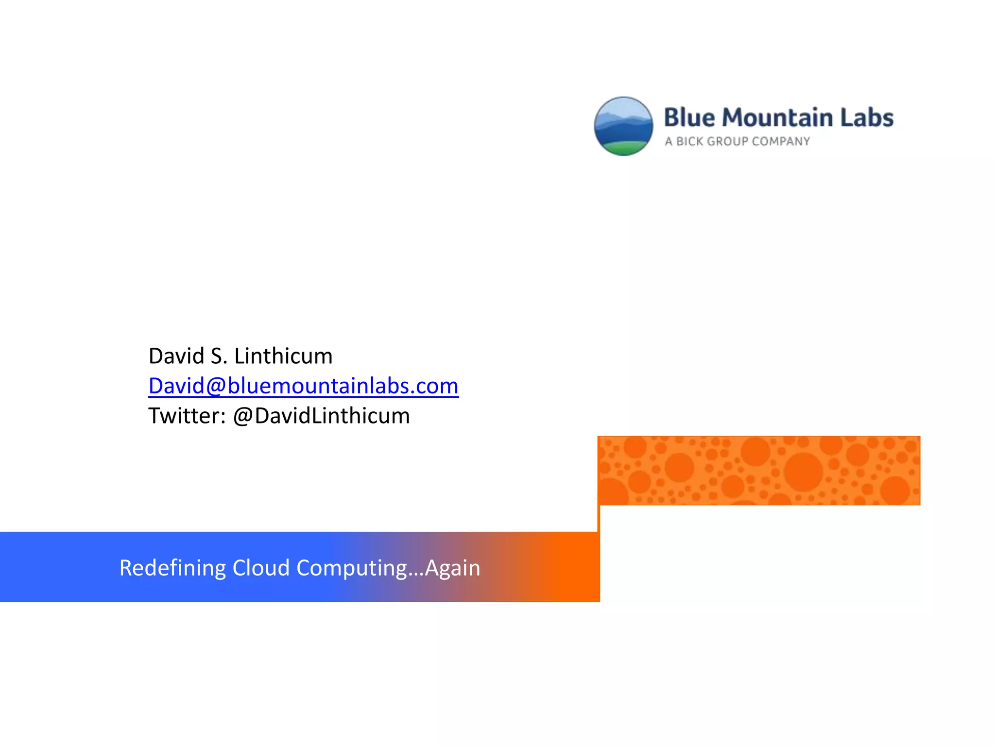David S. Linthicum discusses the evolving concept of cloud computing, emphasizing the need for better definitions and categorizations of cloud technologies. He critiques the oversimplified view of cloud solutions as catch-alls for IT issues, advocating for a focus on the strategic impact and architecture of cloud systems. The session aims to provide insights into best practices for designing and leveraging cloud-based infrastructure effectively.