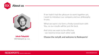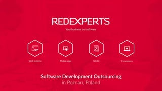 Redexperts, a software development company based in Poznań, Poland, aims to be a strategic partner for clients, focusing on high-quality code and effective project collaboration. Their services include web and mobile development, e-commerce solutions, and design, with an emphasis on user experience and functionality. The company is committed to delivering intuitive systems and has experience in customizing projects to meet specific business needs.
