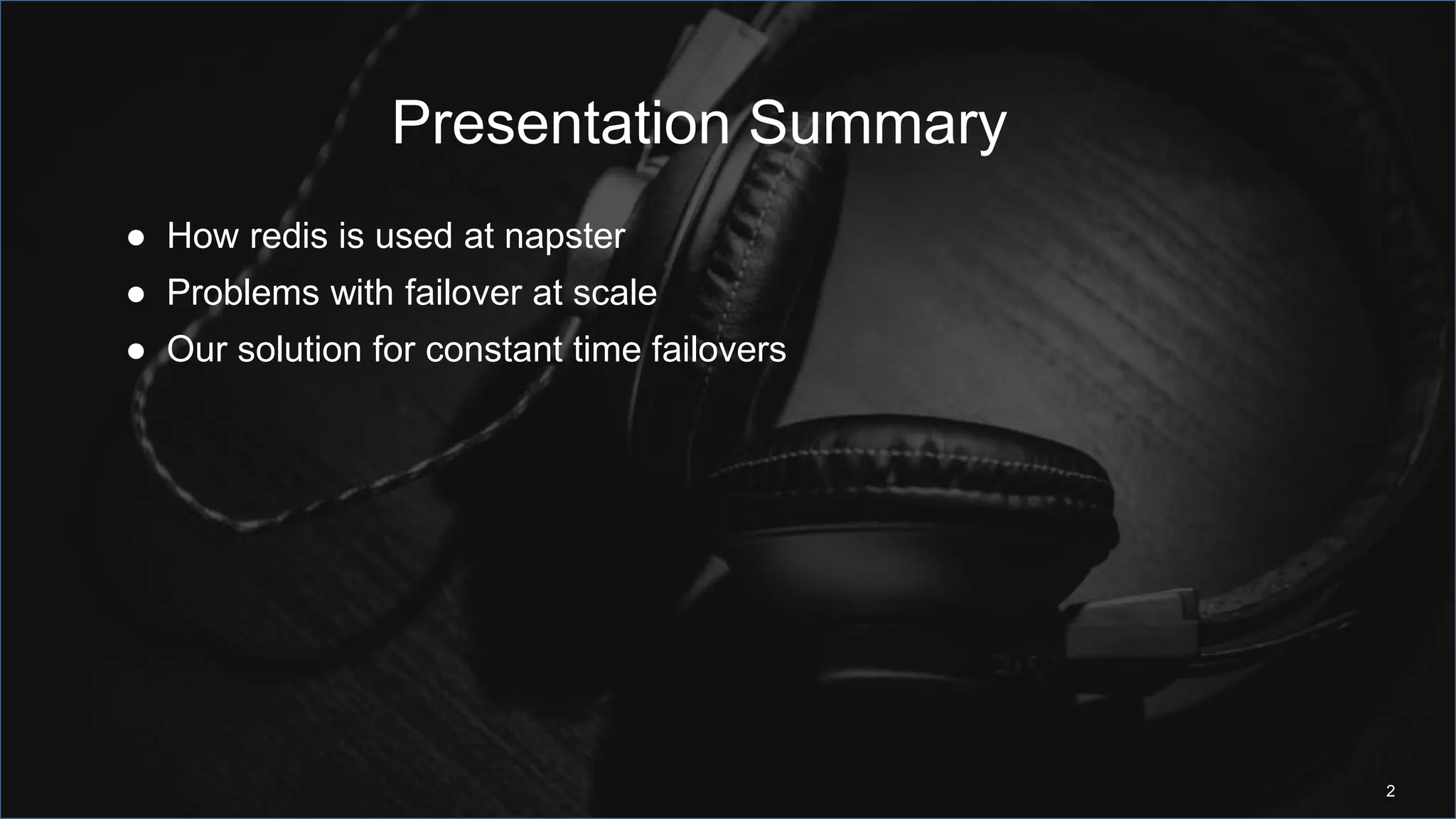 This document discusses Napster's use of Redis for caching and the problems they encountered with Redis failover at scale. As Napster's Redis data grew to tens of gigabytes, failover times increased to over 15 minutes, disrupting their API services. Napster addressed this by implementing connection pooling with ioredis to better handle connections during failovers, configuring Redis for availability rather than consistency, and architecting their systems to gracefully handle temporary Redis outages.