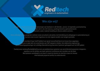 Al meer dan20 jaar levert Reditech oplossingen aan bedrijven in de fabrieks-, proces- en logistieke automatisering.