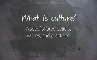 The document outlines the culture at Redmart, emphasizing its importance in attracting talent and creating a productive work environment. Key cultural principles include prioritizing customers, innovation, cost consciousness, diversity, risk-taking, and a focus on results. The ultimate goal is to build a customer-centric e-commerce platform that fosters an inspiring workplace and aligns with the company's vision and mission.