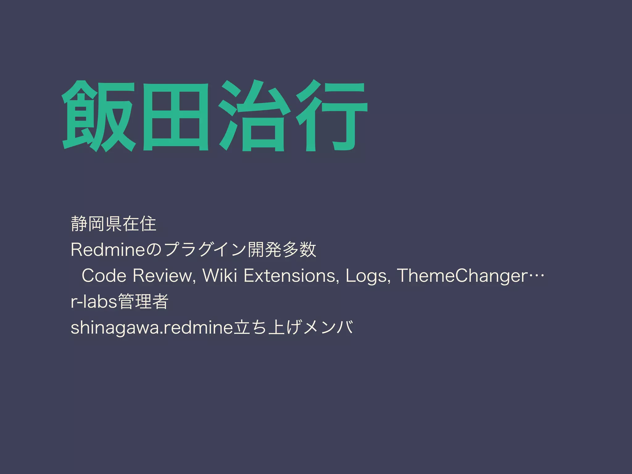 Redmineをプラグインで拡張しよう 1. 2. 3. 4. 5. 6. 7. 8. 9. 10. 11. 12. 13. Ruby