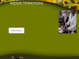 This document discusses redox titrations and provides examples of different types of titrations including acid-base, complexometric, precipitation, and redox titrations. It defines oxidation and reduction in terms of the gain or loss of electrons. Redox titrations involve the transfer of electrons between reactants. The document provides examples of balancing redox equations using half-reactions and discusses how oxidation numbers are used to identify oxidation and reduction in redox reactions.
