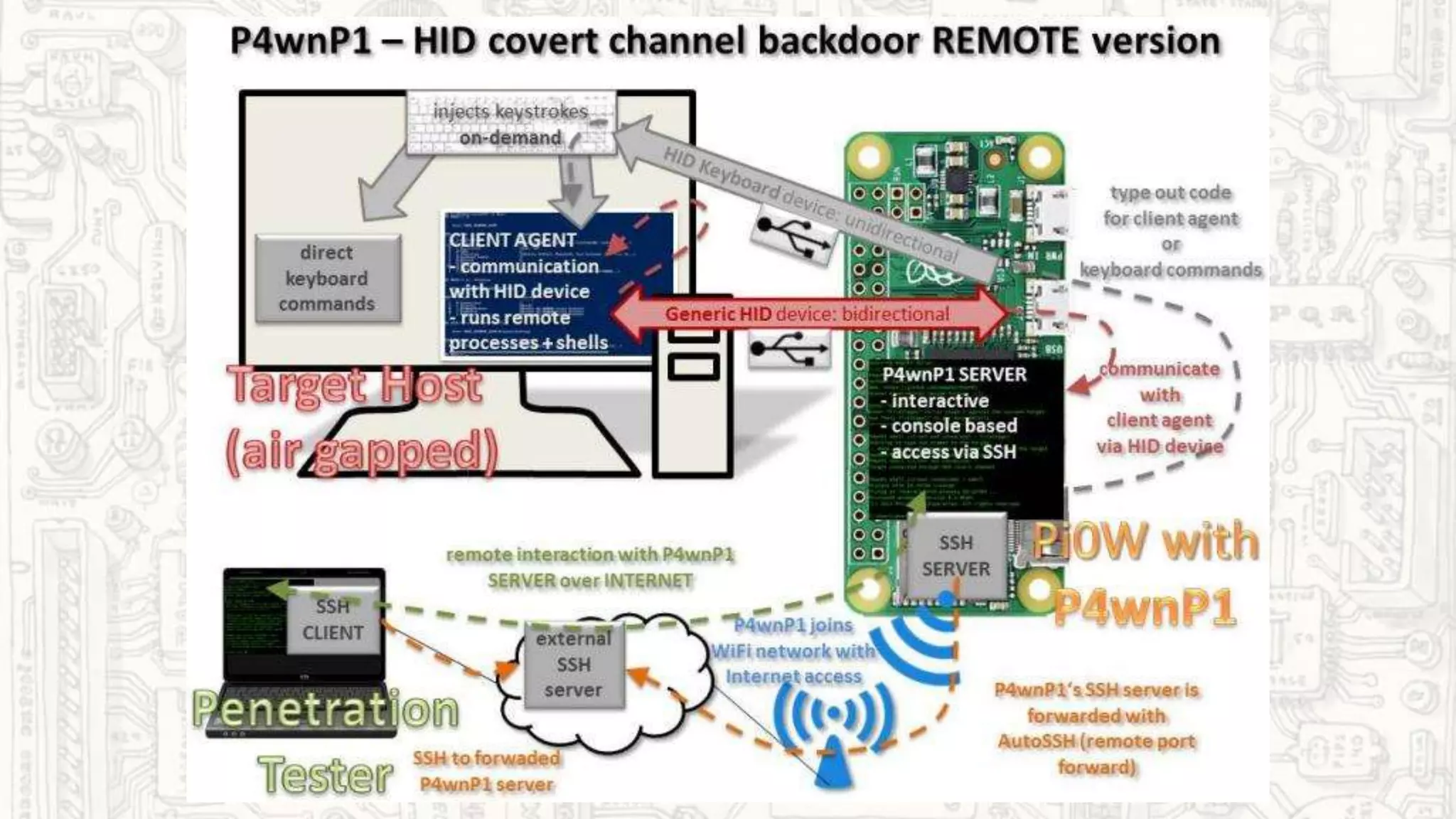 This document discusses various generations of HID attack devices that can inject keystrokes and payloads without detection from antivirus or DLP tools. It covers 1st gen devices like Teensy and Rubber Ducky, 2nd gen techniques like BadUSB, and advanced 3rd gen tools like WHID Injector and P4wnP1 that add WiFi capabilities and ways to bypass airgapping. It also discusses mitigation techniques for Linux and Windows like usbguard and duckhunt as well as resources for further information.