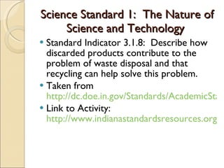 This document discusses reducing, reusing, and recycling waste. It defines key terms and provides background on waste issues like plastic bottle and paper waste. The document includes an activity where students calculate paper towel waste, brainstorm ways to reduce school waste, and create a poster promoting reducing, reusing, and recycling to encourage these practices throughout the school.
