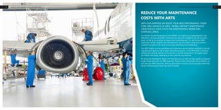 The document outlines the services offered by Arts' Mobile Aircraft Maintenance Crew (MAMC), which includes maintenance, repair, and overhaul (MRO) for avionics, systems, and airframes. Their expertise ensures cost reduction, rapid project turnover, and adherence to high-quality standards, supported by certified technicians. Arts provides flexible, on-site MRO services globally, assisting various aerospace clients in improving their operational efficiency and project success.