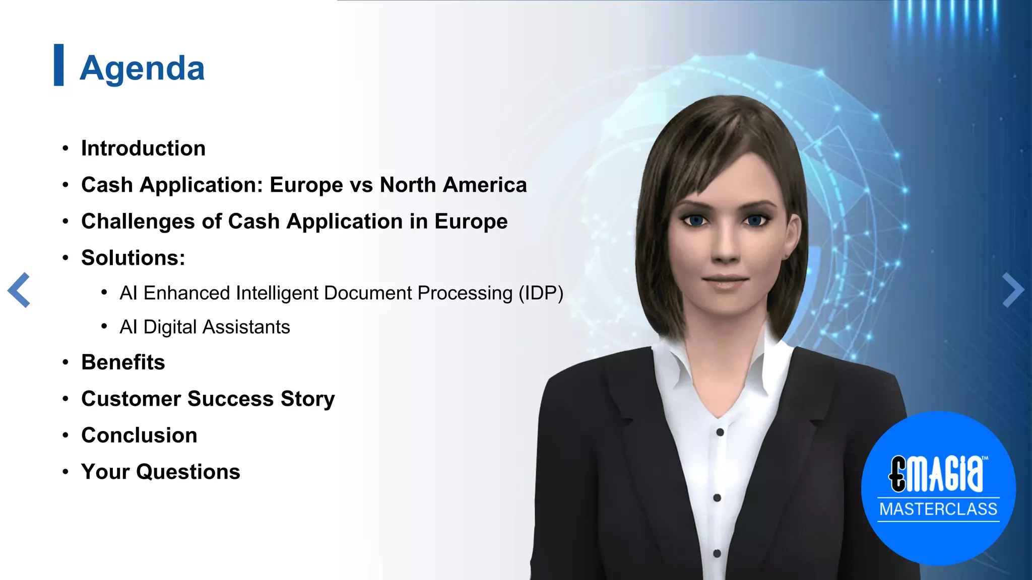 The document discusses using AI to improve cash application processes in Europe. It notes that cash application in Europe faces unique challenges compared to North America due to factors like multiple currencies and languages. The document proposes using AI-enhanced intelligent document processing and AI digital assistants to automate tasks like extracting remittance data from various sources and automatically applying payments to invoices. This could increase cash application hit rates from 45% to 85-90% while reducing costs. A customer success story is provided of a company that achieved these benefits through an AI-powered digital receivables platform.