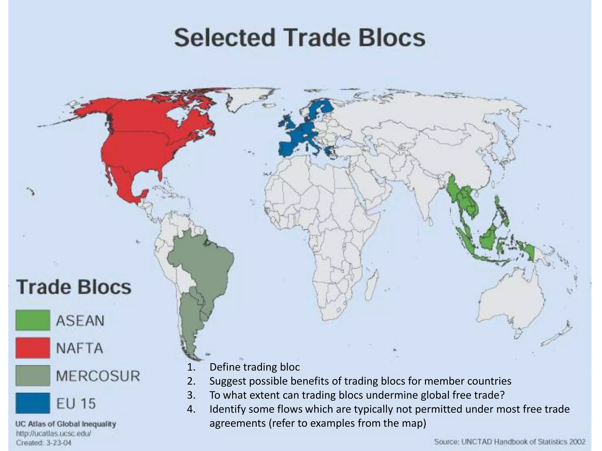 1. The definition of trading blocs and their potential benefits and drawbacks for member countries.