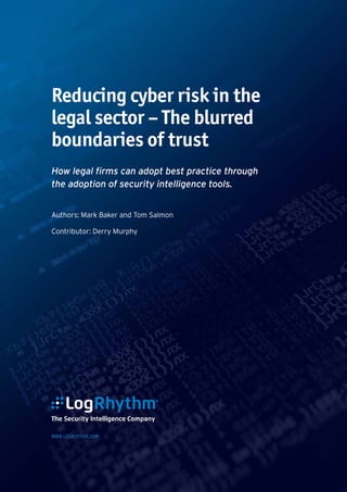 1) The document discusses cybersecurity risks faced by legal firms and recommends adopting security intelligence tools to help detect threats faster through improved monitoring. It outlines key threat vectors like mergers and acquisitions insider threats, phishing emails, and disgruntled employees.