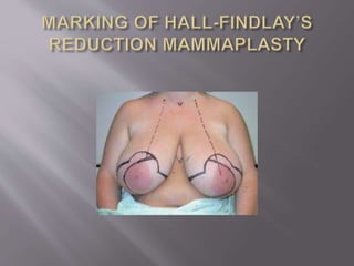 The document outlines the history and techniques of reduction mammaplasty, highlighting its purpose of achieving smaller, aesthetically pleasing breasts and alleviating symptoms associated with mammary hypertrophy. It discusses various surgical techniques, classification of breast hypertrophy, potential complications, and emphasizes the high patient satisfaction and predictability of results. Overall, it demonstrates that reduction mammaplasty is a well-established procedure with significant benefits for patients suffering from large breast size.