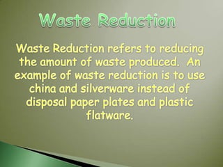 Each person in India generates about 2.7 kg of garbage daily, totaling over 31 million tons annually. Most of India's garbage (67.2%) is disposed of in landfills, of which there are over 10,000 across the country. As the population grows, there is less available landfill space and not all waste is biodegradable or recyclable. Reducing the amount of waste generated can help by extending the lifespan of products through reuse, repair, recycling, and choosing reusable items over disposable ones.