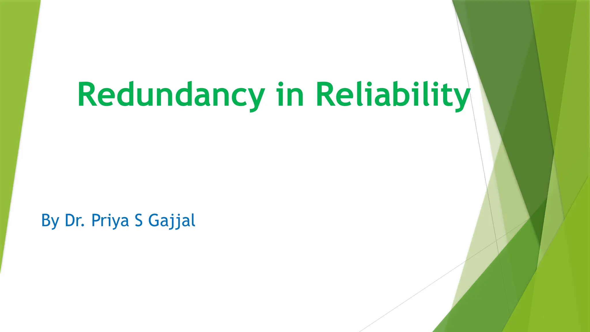 • Redundancy is a key reliability engineering strategy where extra components are