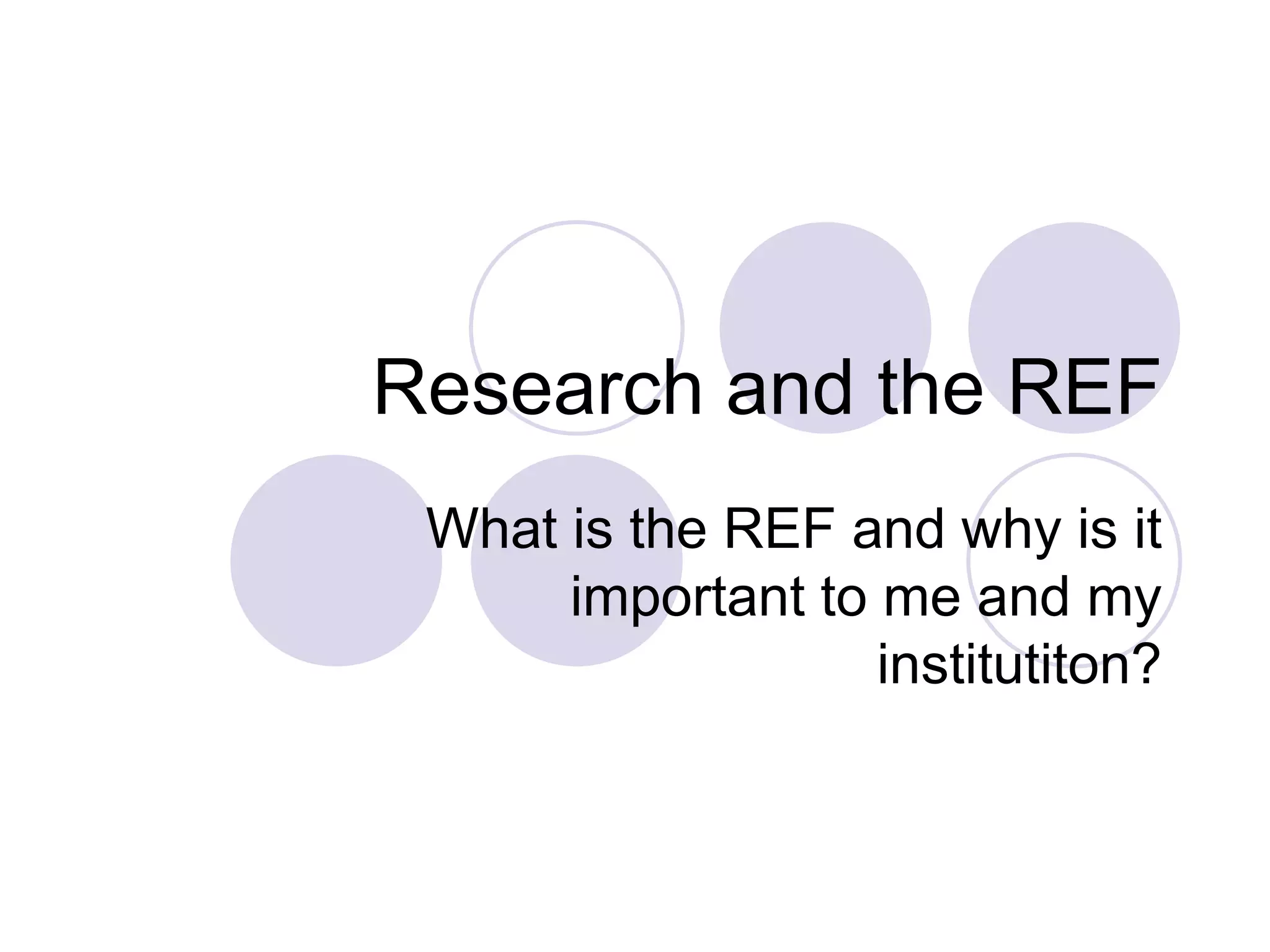 The document discusses the significance of research within higher education, highlighting its role in supporting teaching, attracting funding, and enhancing institutional reputation. It explains the Research Excellence Framework (REF) and its criteria, which assess research quality and impact through specific units of assessment (UOAs) and detailed benchmarks. Key timelines for the REF assessment process and definitions of research are provided, alongside the evaluation criteria for research outputs, impact, and environment.