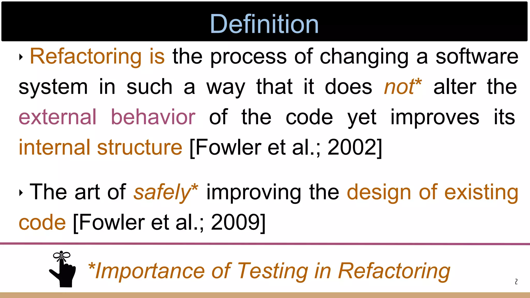 The document discusses refactoring, which is defined as changing the internal structure of code without changing its external behavior or functionality. The purpose of refactoring is to improve aspects like design, structure and maintainability without introducing bugs. Common reasons to refactor include improving code quality, reducing complexity, and increasing understandability and flexibility. The document also discusses code smells that indicate when refactoring may be needed and provides examples of refactoring techniques.