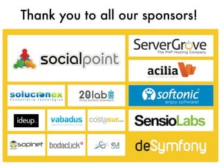 Raul Fraile will present on refactoring PHP/Symfony apps. The agenda includes refactoring 101, coding standards, using an IDE effectively, separating code and data, avoiding environment coupling, and reducing duplicated code (DRY). The example project is an API for jokes. It allows getting a list of jokes or adding/editing jokes and sends email on changes. Special cases are that Java jokes are not allowed. The code will be refactored over the steps in the tags.