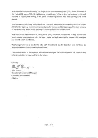 Wael Bakr was employed by eni Iraq B.V. from June 2011 to December 2013 as a Contract Engineer. He supported multiple operational departments with procurement processes and was flexible in a changing environment. Wael managed 20-25 ongoing contract development processes, including high-value contracts. He demonstrated strong communication and presentation skills. Wael was well-respected by his peers and superiors for his team spirit and willingness to help others. His manager recommends him as a competent employee.