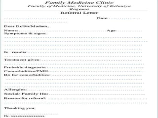 The document presents an overview of health care levels, focusing on the three levels of prevention: primary, secondary, and tertiary. It emphasizes the importance of a structured referral system in health care for effectively managing cases beyond primary care capabilities. Additionally, it outlines the roles and responsibilities of health care workers, particularly nurses, in ensuring efficient patient referrals and providing necessary care at different healthcare levels.