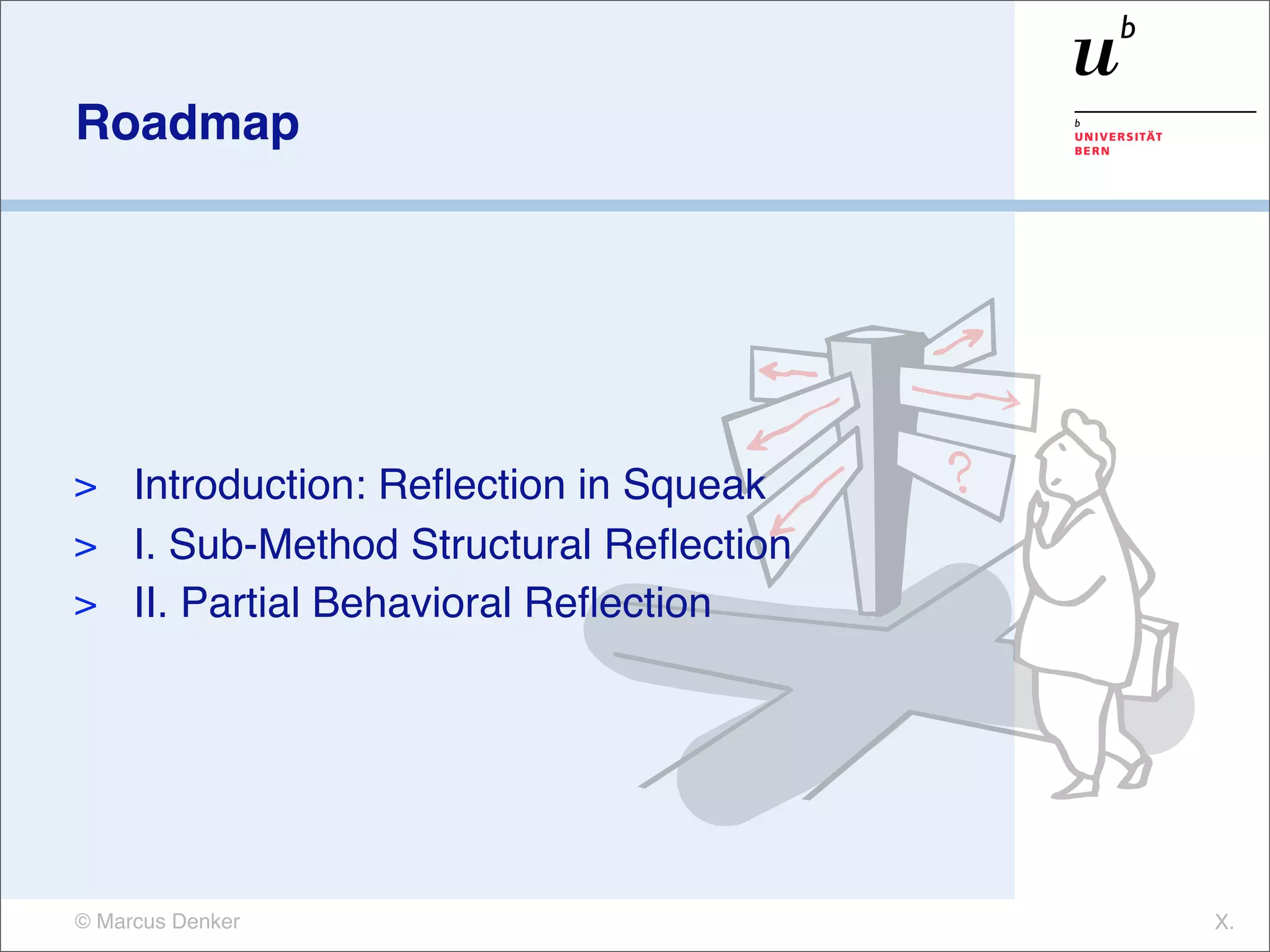 This document discusses reflection in the Squeak programming language. It covers sub-method structural reflection using Reflective Methods, which allow annotations and extensibility at the bytecode level. It also discusses partial behavioral reflection using hooksets and metaobjects to selectively reflect on method execution and message sending. Examples are given for implementing a profiler and pluggable type system using these reflective capabilities.