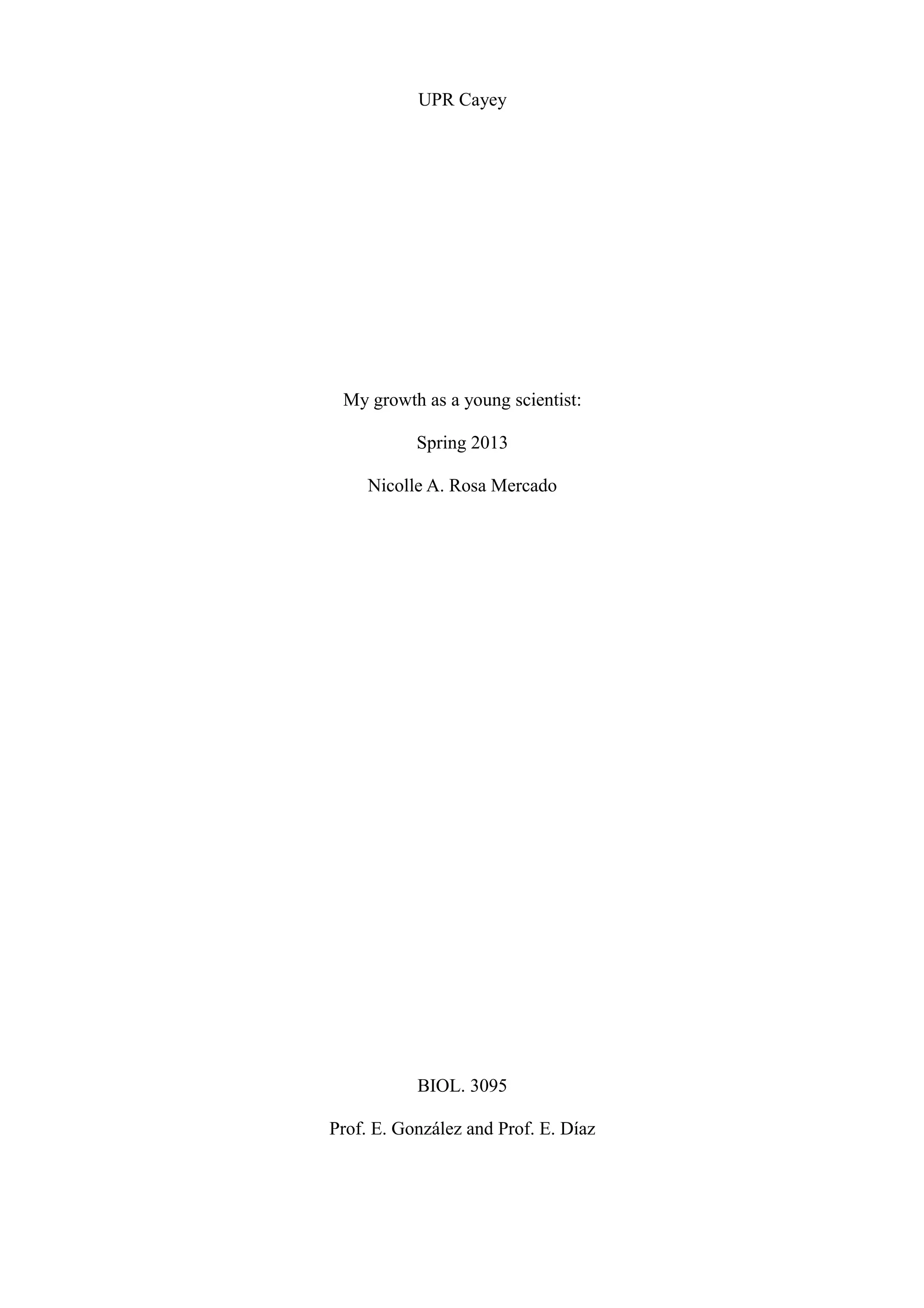 The student participated in the RISE Spring Semester Bridge program which provided workshops on various laboratory techniques including agarose gel electrophoresis and electron microscopy. The course also arranged seminars given by professors and graduate students on diverse research topics being conducted on campus. Students worked in pairs on assigned research, preparing a laboratory notebook, article, and final presentation. Participating helped the student improve social and research skills, exposed her to career options, and contributed greatly to her academic life.