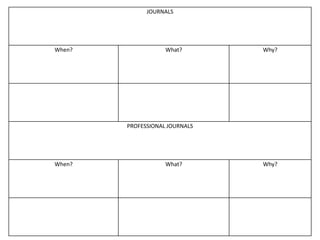 This document discusses reflective practice and learning. It provides information on keeping professional journals, utilizing elements of reflective journaling to develop skills, practicing critical reflection as learners and workers, and how reflection can help bridge theory and practice, deal with ambiguity and change, lead to critical awareness, and allow for analyzing why mistakes happen. Reflection is presented as an important part of learning that can empower individuals and illuminate their understanding.
