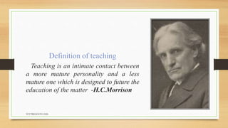 1) Reflective teaching involves teachers analyzing their own practices, how lessons are taught, and identifying ways to improve student learning outcomes.